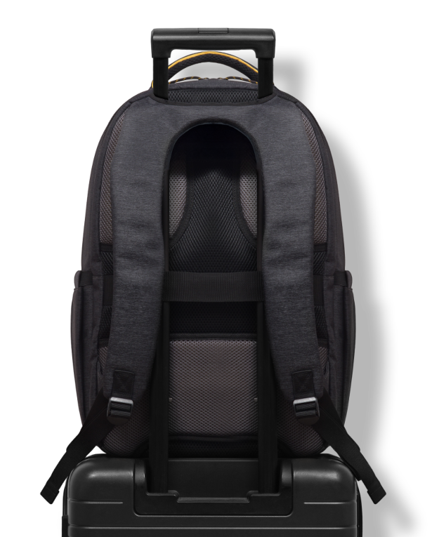 Eine dicke Polsterung für hohen Tragekomfort sowie zusätzliche Riemen, um den Rucksack an Koffern zu befestigen
